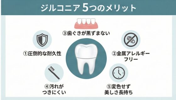 ジルコニアを選ぶことで、お口の健康と見た目には多くのメリットがあります。