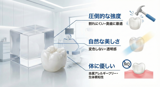 「銀歯を白くしたいけれど、割れにくい素材はある?」 「ジルコニアって最近よく聞くけど、普通のセラミックと何が違うの?」